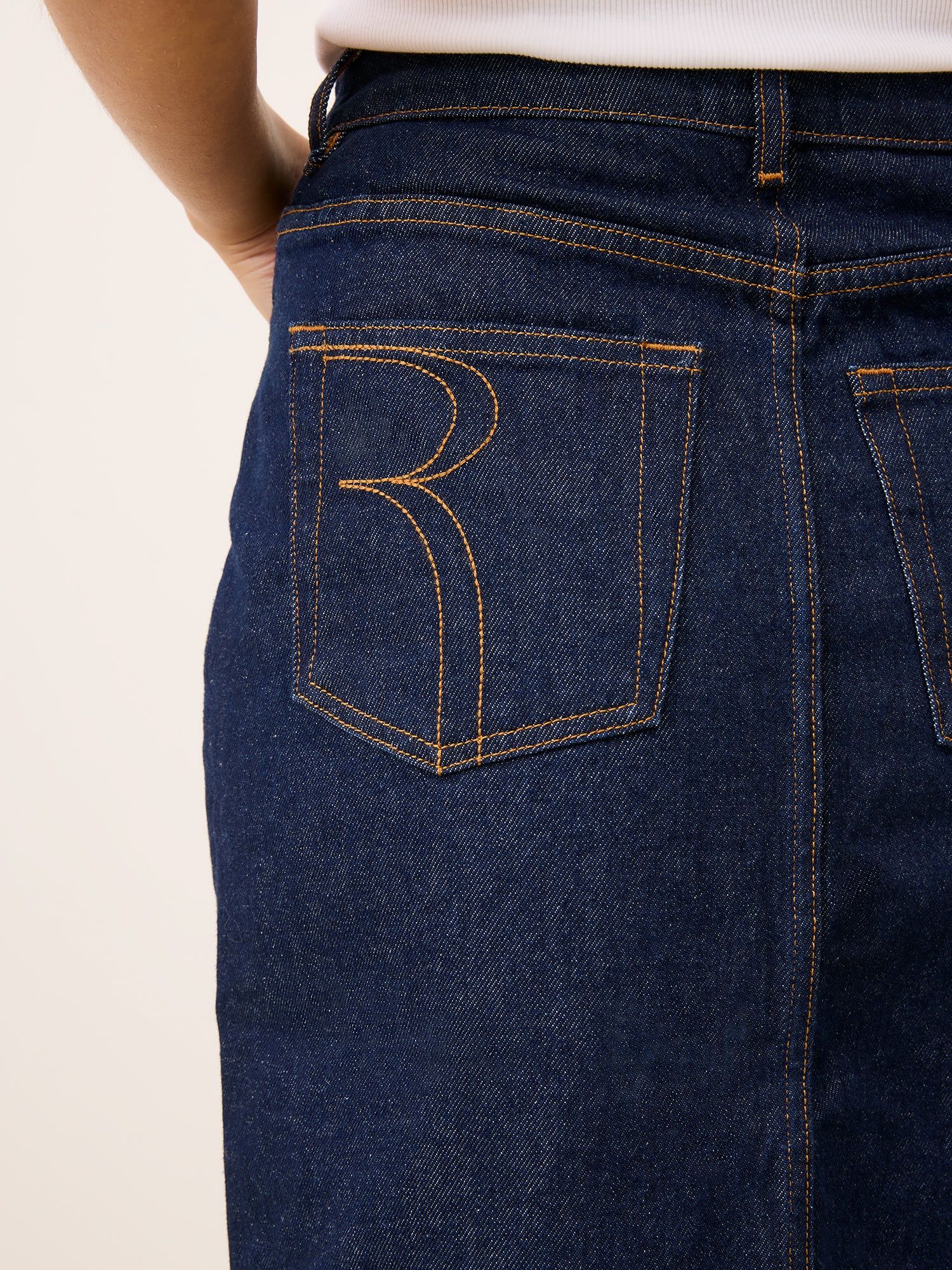 Coloris uni brut Deux poches frontales Poche gousset Se porte en taille Broderie R sur la poche arrière Fermeture zip et bouton Fabriquée en Tunisie